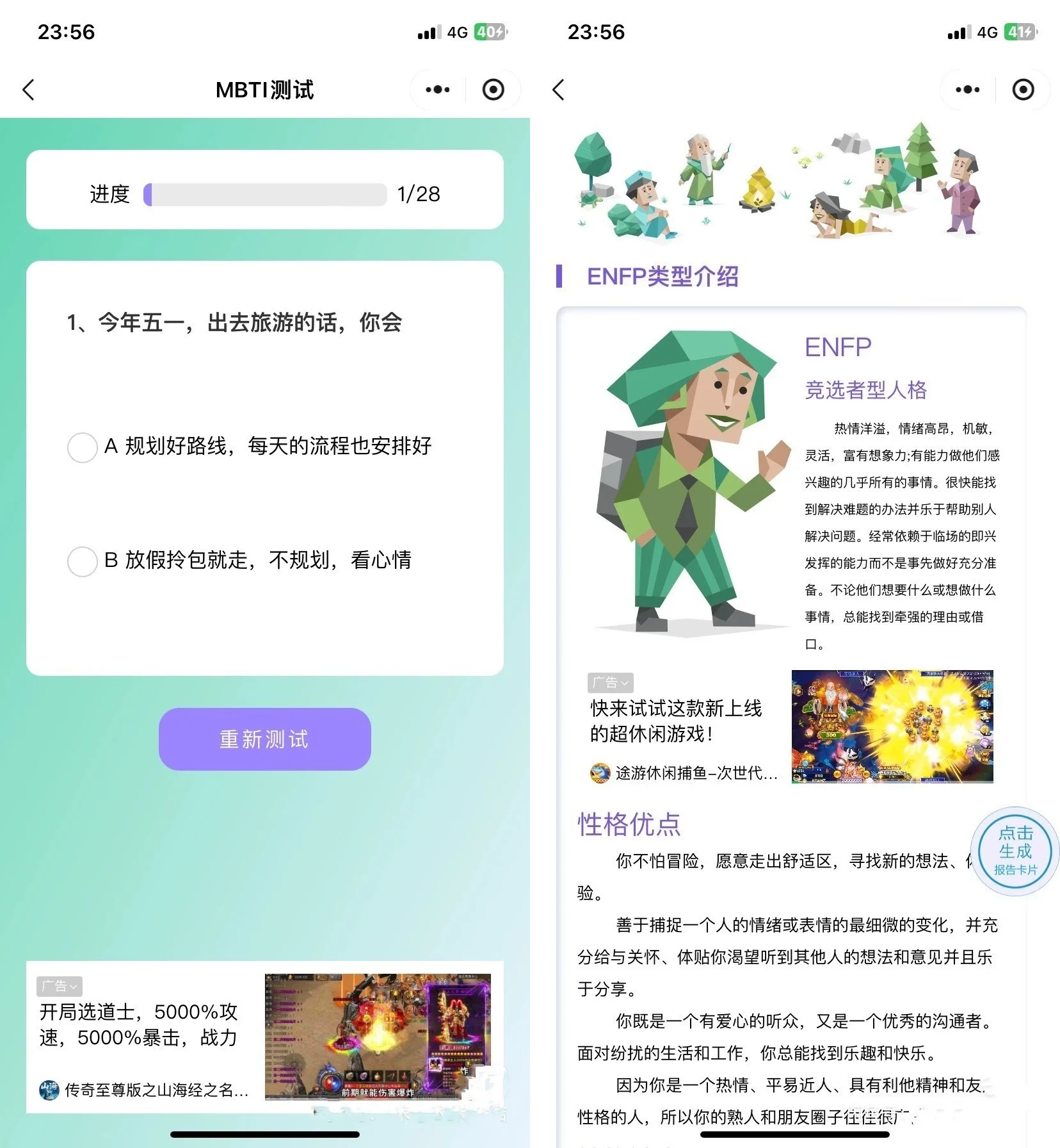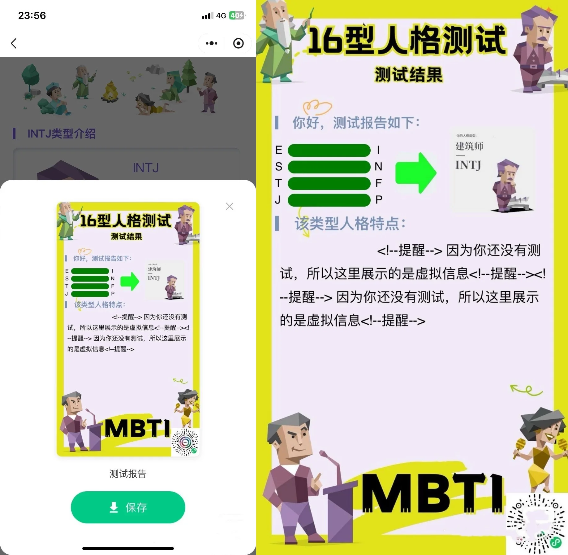 MBTI人格分析小程序源码,云开发最 新mbti题库测试题和自定义题库人格分析小程序源码!