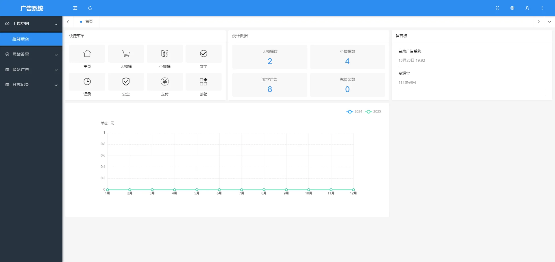 这款系统比较简单,但是又具备了所有的功能。目前本系统包含大横幅广告、小横幅广告、文字广告,同时支持自定义广告的招商图、招商文字等功能,还支持广告到期前自动给管理员发送邮件,当然在线支付功能是必不可少的