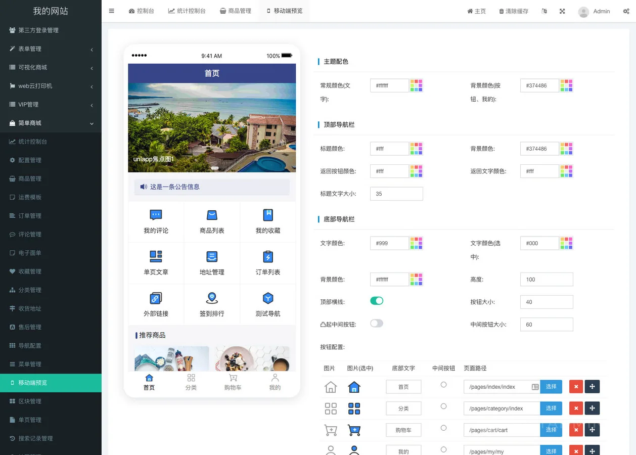 12、自定义导航:PC版、UniAPP版均支持后台自定义导航功能