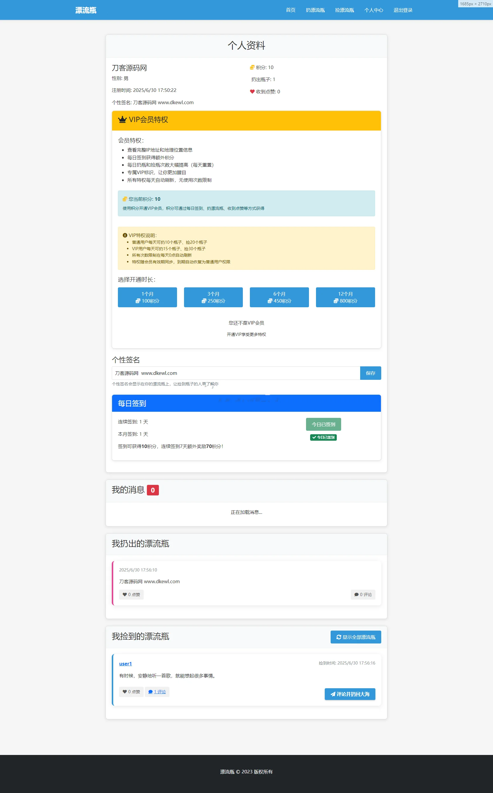 全新漂流瓶系统源码 全开源 新UI 附安装教程 亲测可用