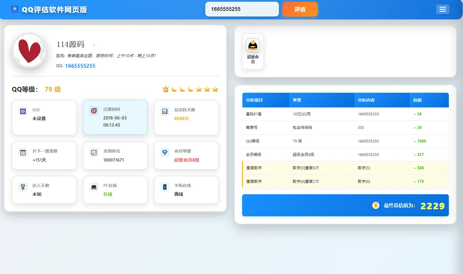 QQ在线评估工具系统源码含接口
