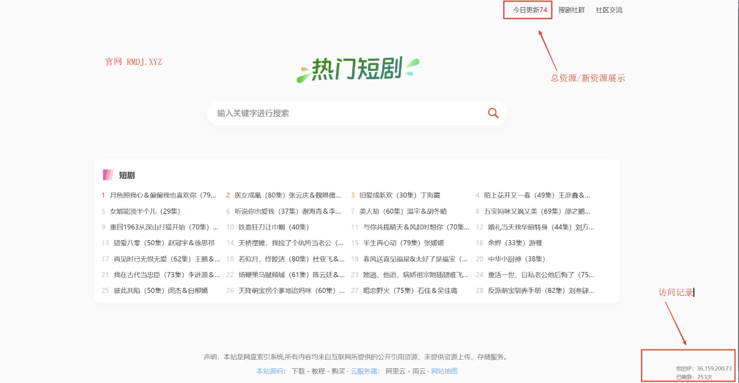 短剧搜索管理系统(美化版)通过清晰的搭建流程、灵活的网盘对接与自动化运营配置,能帮助用户快速搭建专业的短剧管理平台。从环境准备到自动更新,每一步均围绕 “高效、便捷” 设计,即使是新手也能按指南完成部署。后续可根据用户需求,进一步优化前端页面(以源码实际展示为准)或扩展资源对接渠道,提升系统实用性。