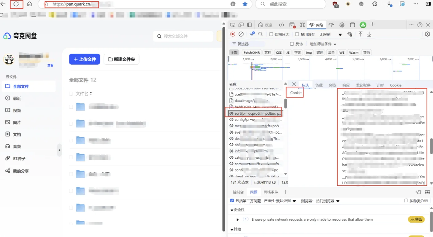2 先设置夸克网盘 Cookie(后台概括有说明,不懂的百度一下):-F12-F5-COOKIE