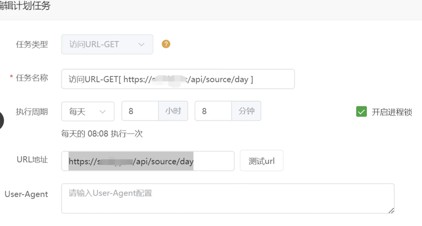 访问 URL 填写:https://你的域名/api/source/day(将 “你的域名” 替换为实际域名);