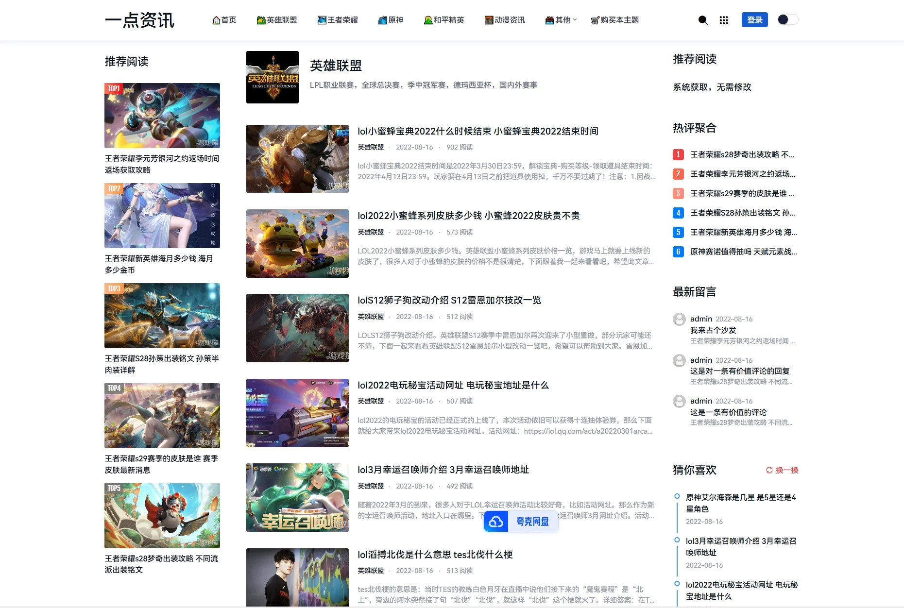 游戏攻略新闻资讯主题模板源码 YK一点资讯模版 zblog主题模版