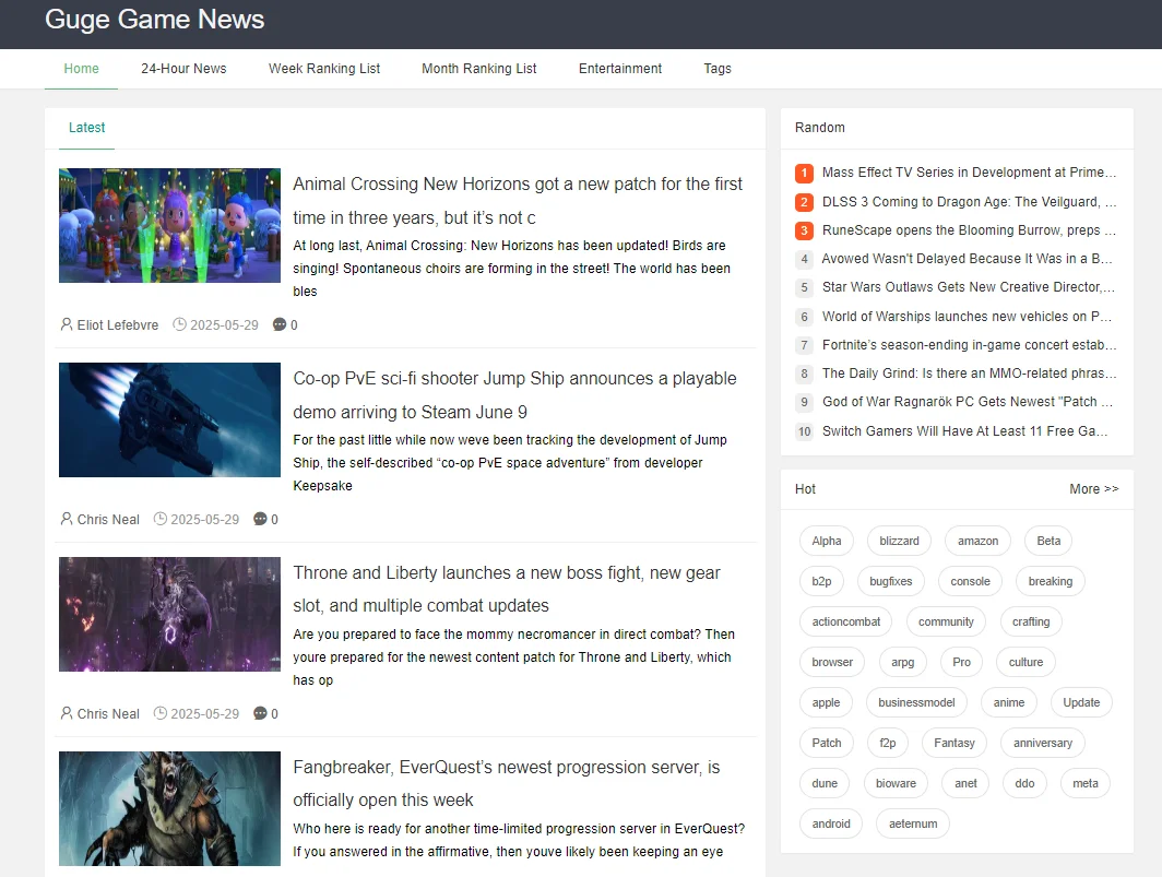 运营谷歌游戏资讯网站 帝国cms 7.5 自适应。
