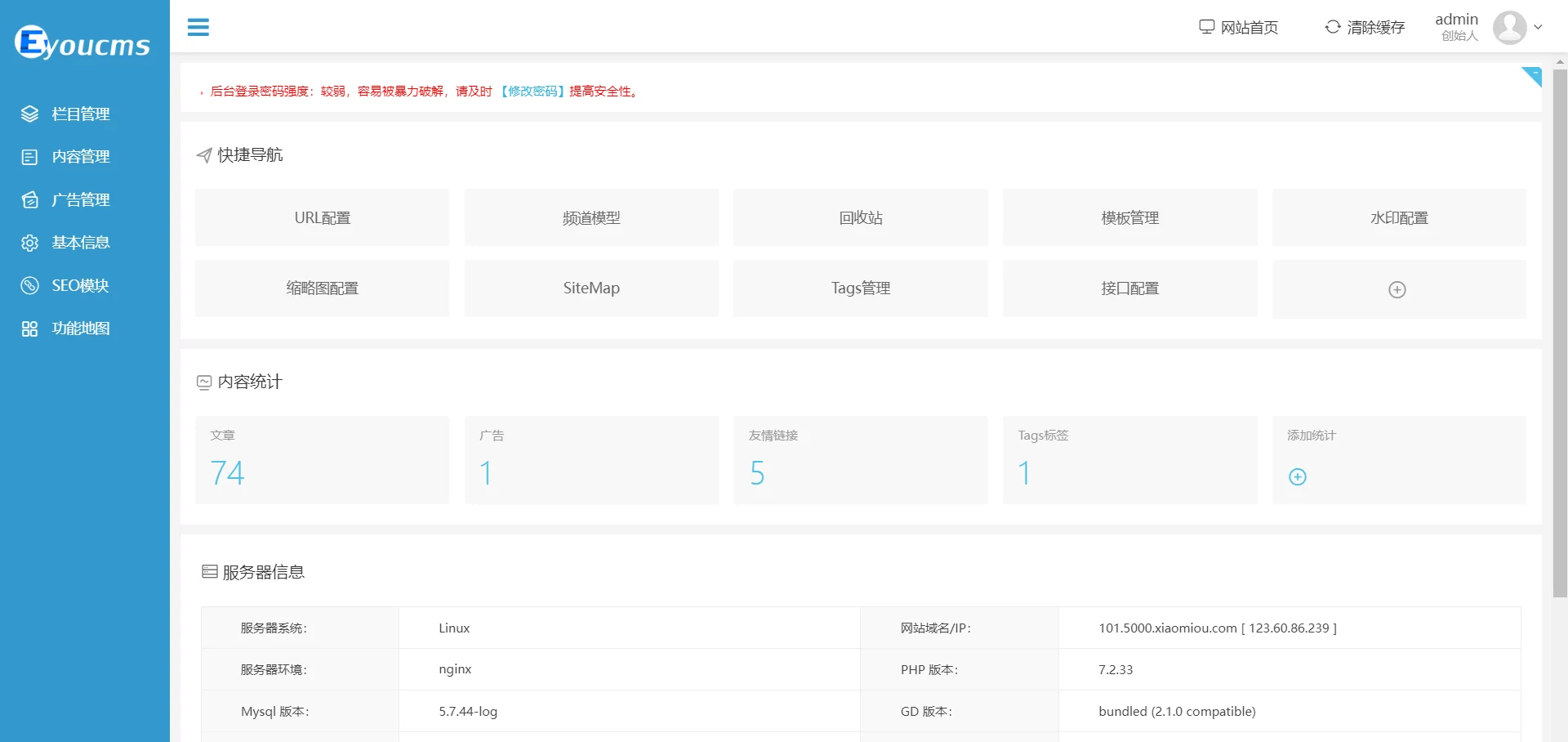 软件环境:Apache/Nginx/IIS + PHP 7.0~8.0 + MySQL 5.0 及以上